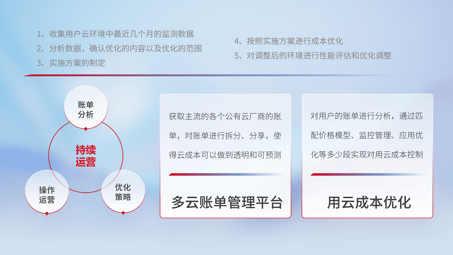 运用智能化工具分析云资源,,,,提供日常费用可视化工具,,,,自动账单拆分,,,,成本优化云上费用,,降本增效。。。